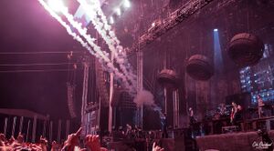 | Throughout the song, bursts of smoke would occasionally launch up from the ground. This effect originates from the Reise, Reise Tour. |