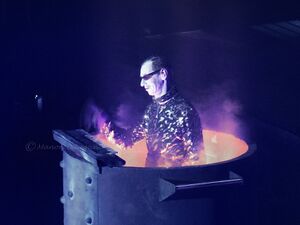 | Fire would shoot out of the floor, corresponding with Schneider's drum hits. |