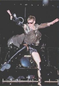 | Throughout the concert, Flake would have a contraption attached to his arm. While performing his "dance", the contraption would start functioning as a sparkler firework and Flake would make circular motions with his arm. | |