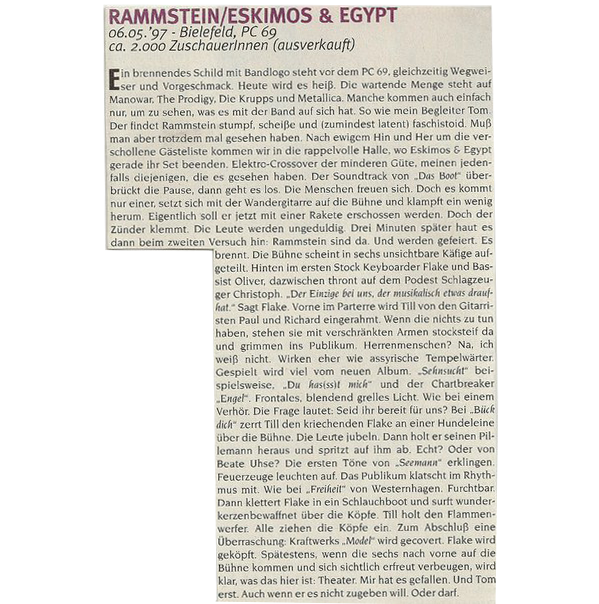 - The first known time the remix of Rammstein by Eskimos and Egypt and Das Modell were played live.