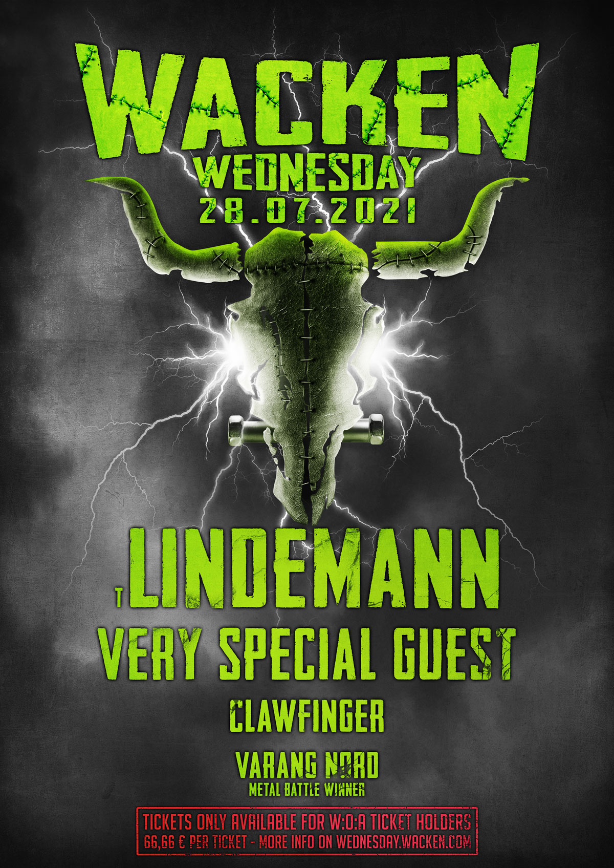 - Till's performance was initially announced on 11 November 2020 and scheduled for 28 July 2021 as part of an additional day called Wacken Wednesday for which tickets were only available for people who already had a ticket for the Wacken 2021 main festival. Tickets for this extra day costed 66,66€.[1]