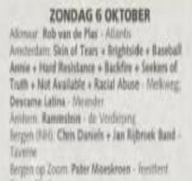- The show was originally planned to be held at Brummen's De Verdieping, but was moved to Arnhem's Willemeen.