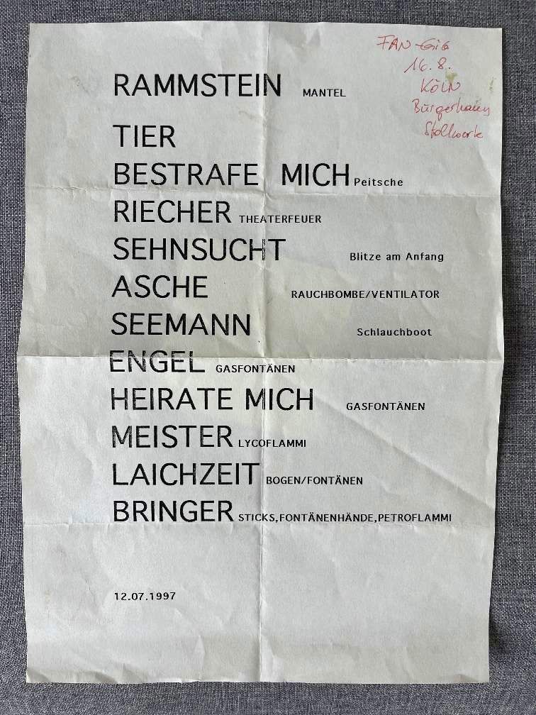 - Rammstein was originally not scheduled to play at the festival. The band "Faith No More" was originally scheduled to play. Due to a medical emergency in the family, their concert was canceled and Rammstein stepped in as a substitute at short notice.