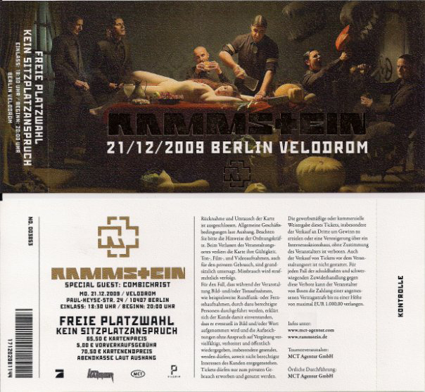 - This was the last of four consecutive shows at the Velodrom in Berlin, as well as the last Rammstein concert in 2009.