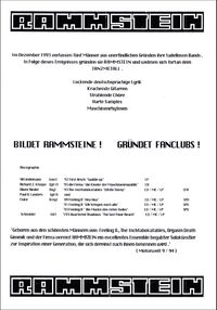 "Geboren aus den schönsten Männern von Feeling B., The Inchtabokatables, Orgasm Death Gimmik und der Firma vereint RAMMSTEIN ein excellentes Ensemble begabter Solokünstler zur Inspiration einer Generation, die sich dereinst nach ihnen benennen wird."
