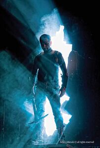 | After the guitar solo Flake would come to the center of the stage and start dancing, the moves would usually be very chaotic and abrupt. |