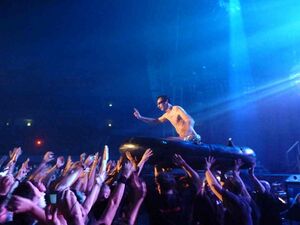 | At some point during the song an inflatable boat would be brought on stage, Flake would take place in it. The boat would be passed to the crowd where Flake would spend some time sailing until eventually returning. |