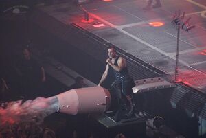 | Throughout the song, bursts of smoke would occasionally launch up from the ground. This effect originates from the Reise, Reise Tour. |