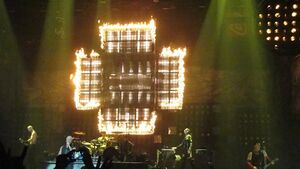 | Near the end of the song, flamethrowers mounted at the bottom and top of the stage would shoot flames out. On the "Heya", the bottom flamethrowers would activate, on the "Nein", it would be the top ones. |